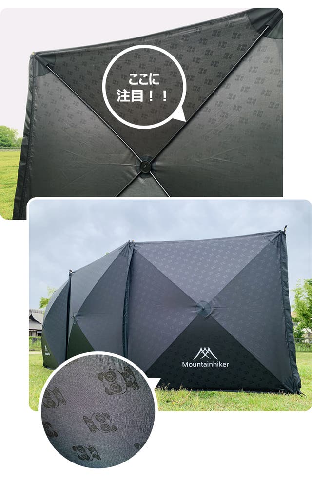 この大きさは強さ、そしてお家にいるようなプライバシー保護、簡単展開簡単収納、自由自在な変形機能など、キャンプ用陣幕として理想的な様々な機能を備えております!