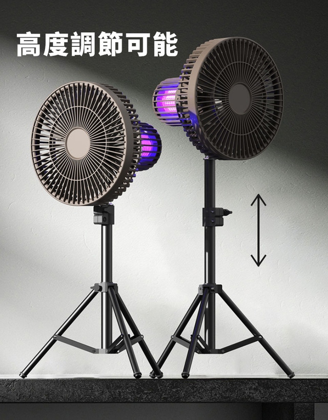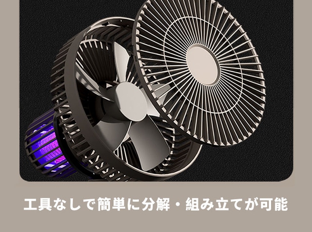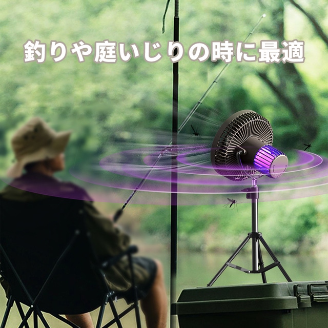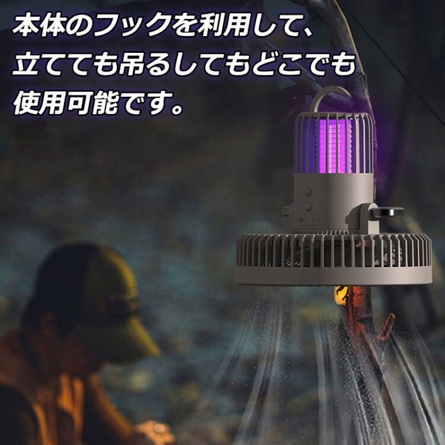 UVライトを搭載しております。テントの中に吊るせば、サーキュレーターとして空気を循環します。また、釣りや庭いじりの時も暑さを和らげながら同時に常夜灯として使えるので、とても便利!