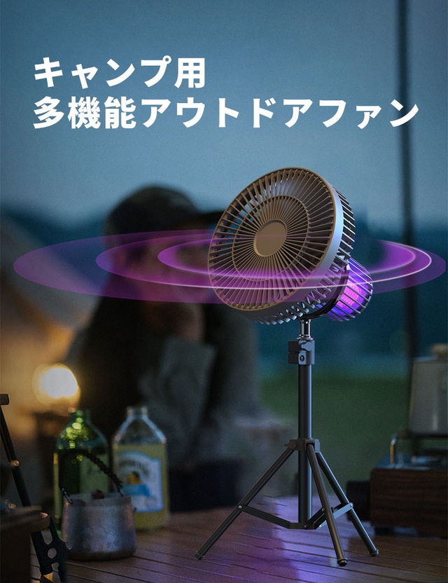 アウトドアでアクティブな夏を満喫したいですよね!でも、外は暑いし、夜になると暗くて危険・・・。そんなあなたのために、わたしたちはコードレス多機能アウトドアファンを開発しました。