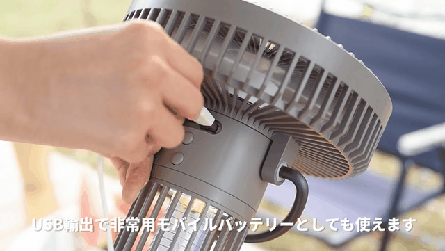 本体は簡単にファンから取り外し可能。8000mAhの大容量バッテリーを搭載しているので、コンセントがないアウトドアでもスマホやタブレットの非常用モバイルバッテリーとしても使えます。