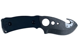 硬い筋やロープを切ったりするためのフック状になった刃物。引き裂いたり引っ掛けて引っ張ったりもできます。