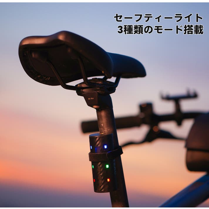 緊急時に赤と青が激しく光る「SOSモード」、夜道で圧倒的な存在感を放つ「サイクリングモード」、赤と青と緑がゆっくり入れ替わる「ブリージングモード」を搭載。