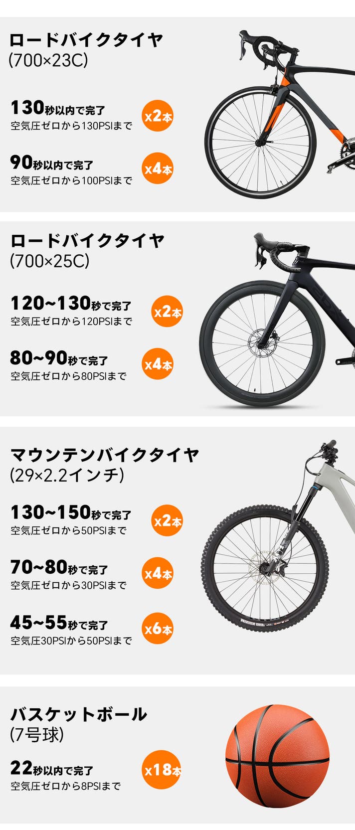 - どんな自転車のタイヤにも空気を高速安定供給。ロードバイクやマウンテンバイク乗りにオススメ!
