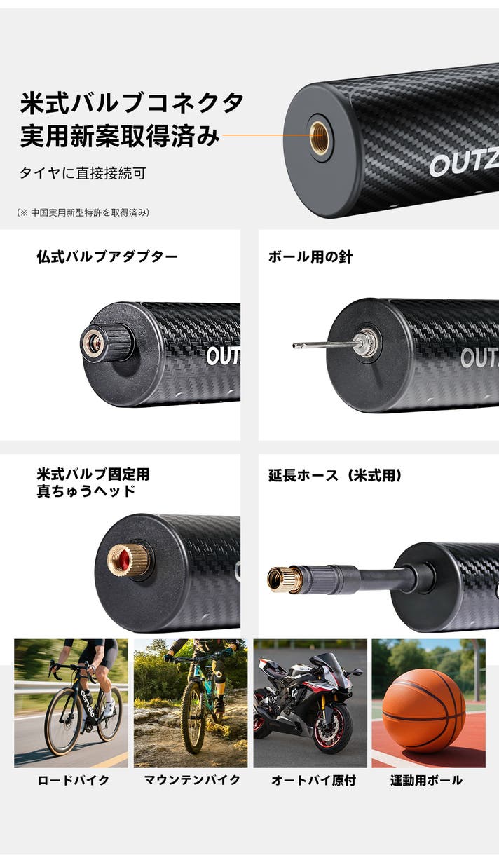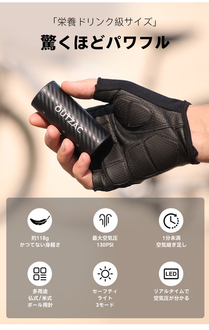 【開発の初衷:サイクリストの悩みを解消するために】 空気入れを携帯して自転車に乗る人たちは、常に共通の悩みを抱えてきました。「手作業のポンプは時間がかかりすぎる」「CO2ボンベは一度きりでゴミになる」「かといってフロアポンプは持ち運べない」。 OUTZACはそれらの課題を解決するために、電動ポンプJET BIKE PUMPを開発しました。ポケットに収まるほどコンパクトでありながら、ロードバイクからMTBまであらゆるタイヤに対応し、プロ仕様のパワフルな注入性能を実現。サイクリストを物理的な制約から解放し、より遠くへ、より軽やかに進むための相棒として誕生しました。