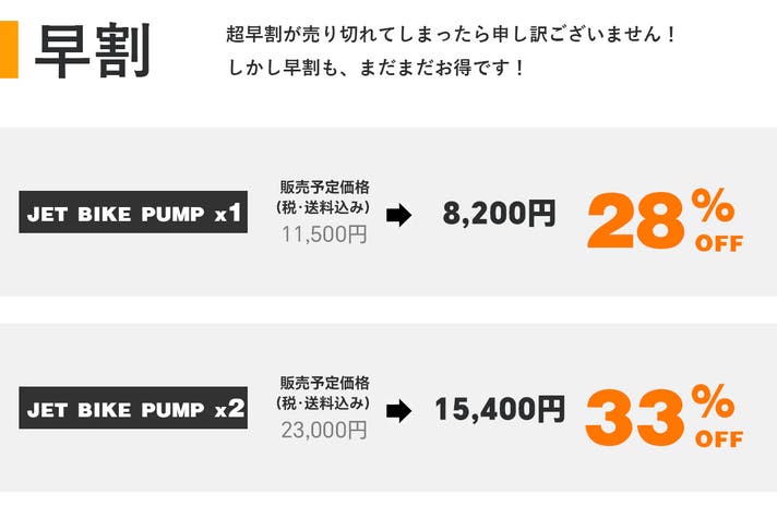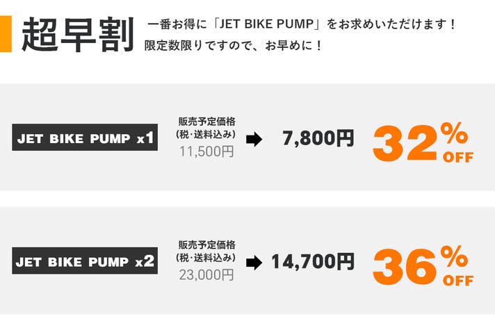 マクアケ特割 「JET BIKE PUMP × 2」