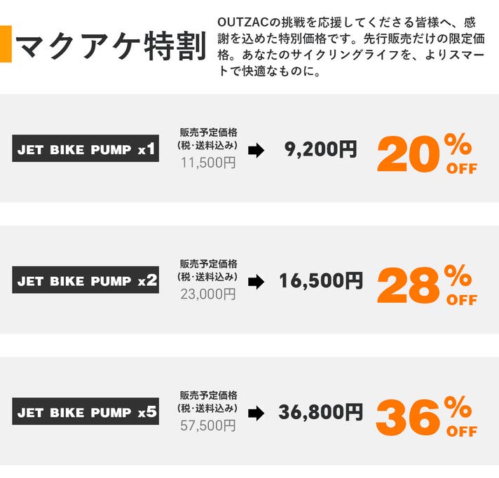 マクアケ特割 「JET BIKE PUMP × 5」