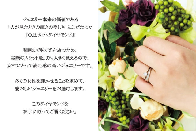 エンゲージメントリングには最高クラスの品質の「O.E.カットダイヤモンド」を使用。