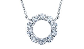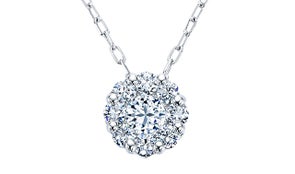 「O.E.カットダイヤモンド」の輝きが引き立つように、1粒のダイヤモンドを8個の小さなダイヤモンドで取り巻いたペンダントです。
