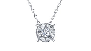 普通のダイヤモンドに比べて同じ重さでも直径が大きいという「O.E.カットダイヤモンド」の特長を活かしたペンダントです。シンプルなデザインなので、仕事でもプライベートでも使いやすさ抜群です。ファーストジュエリーにも最適です。
