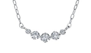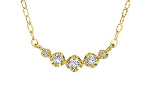5ピースの「O.E.カットダイヤモンド」をグラデーションに横に並べたペンダントは、鎖骨にそってなじみ、胸元を魅力的に演出します。
