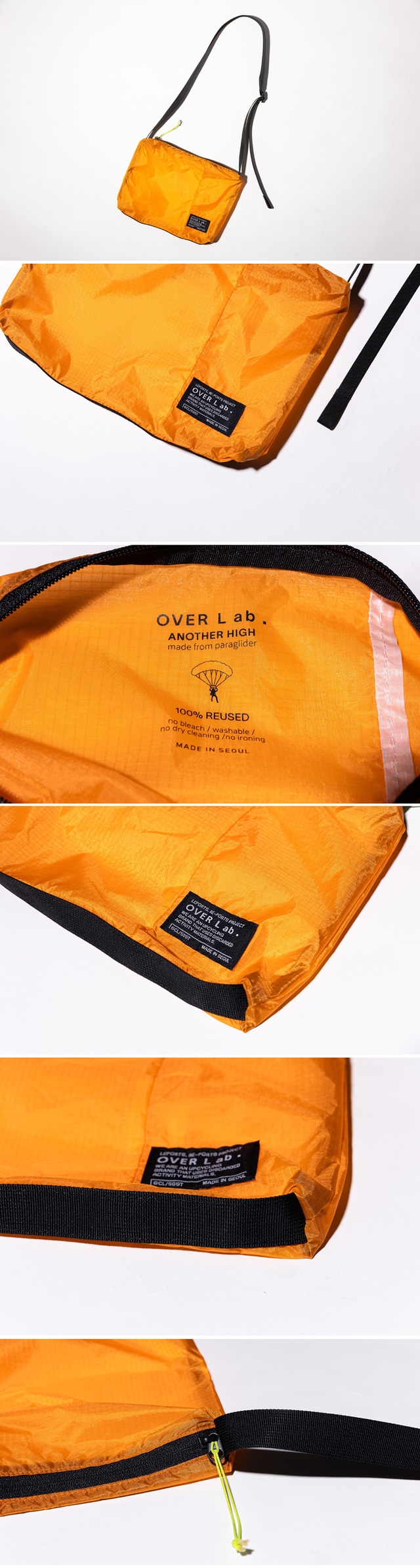 寿命を全うしたパラグライダー生地を活用して素敵なバッグへと生まれ変わりました!生活防水はもちろん、たった55gの超軽量バッグで旅行時や外出時に軽くお使いいただけます。本当にたくさん入るんです。また、このプロジェクトは環境を考えるアップサイクリングを進めているOVERLABという企業の保有在庫を活用しており、アップサイクリング商品企画を提示し、ブランドが消費者にその価値を肯定的に伝えることができるようにする役割を担っています。