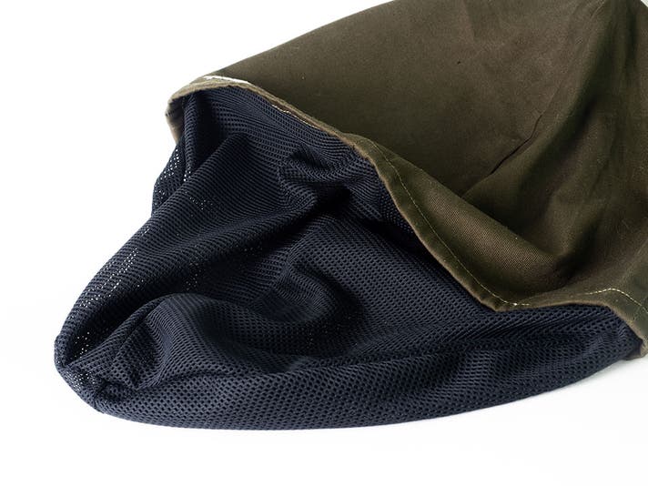 外側はやわらかなコットン、内側は通気性のよいポリエステルメッシュの二重構造。
