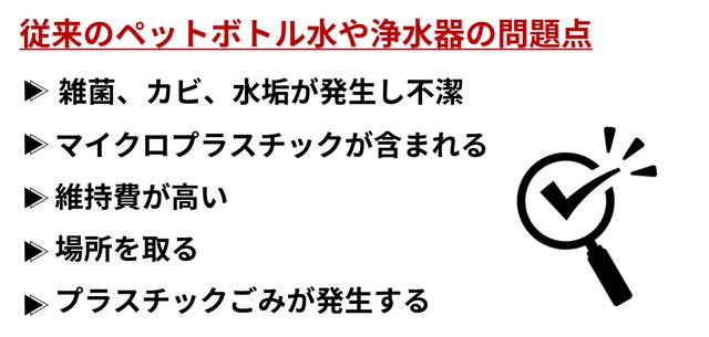 私自身は日ごろからペットボトルの水を購入して飲んでいたのですが、毎日2リットル以上の水を飲むため出費が気になっていました。