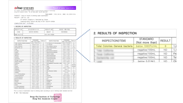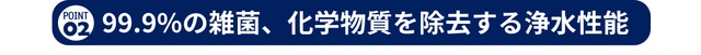 水に含まれる雑菌や塩素などの化学物質を99.9%除去することがテストで確認されています。