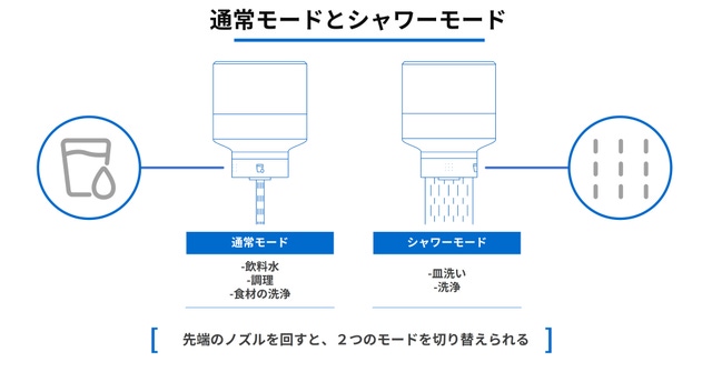 OVESRSINKには、水をシャワー状に流すモードが備わっています。