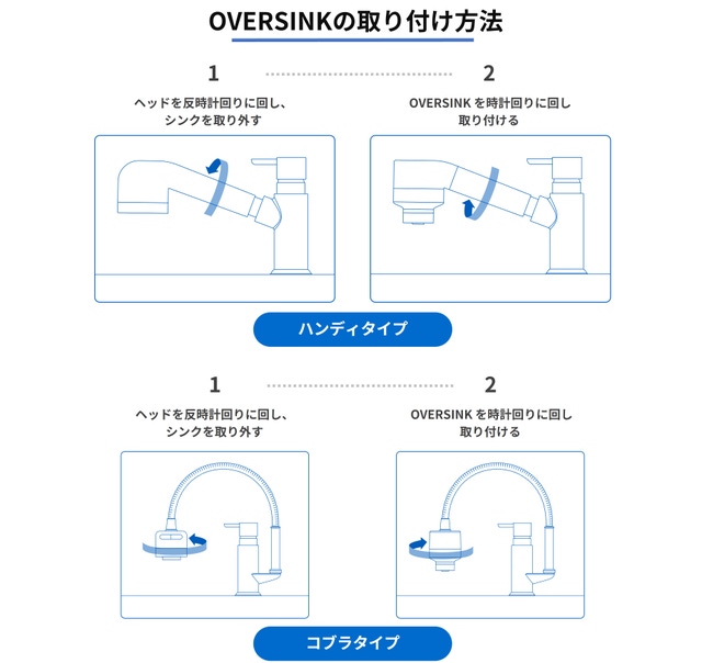 OVESRSINKには2種類の形状があり、蛇口の種類に合わせて選択する必要があります。