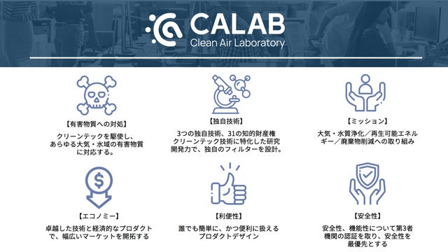 CALABとは、Clean Air Laboratoryの略で、その名の通りクリーンな空気を提供する製品を開発するために設立されました。