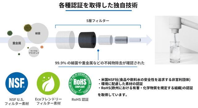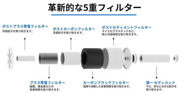 - フィルター技術のプロが作る独自開発の5層フィルター。99%の不純物を除去!