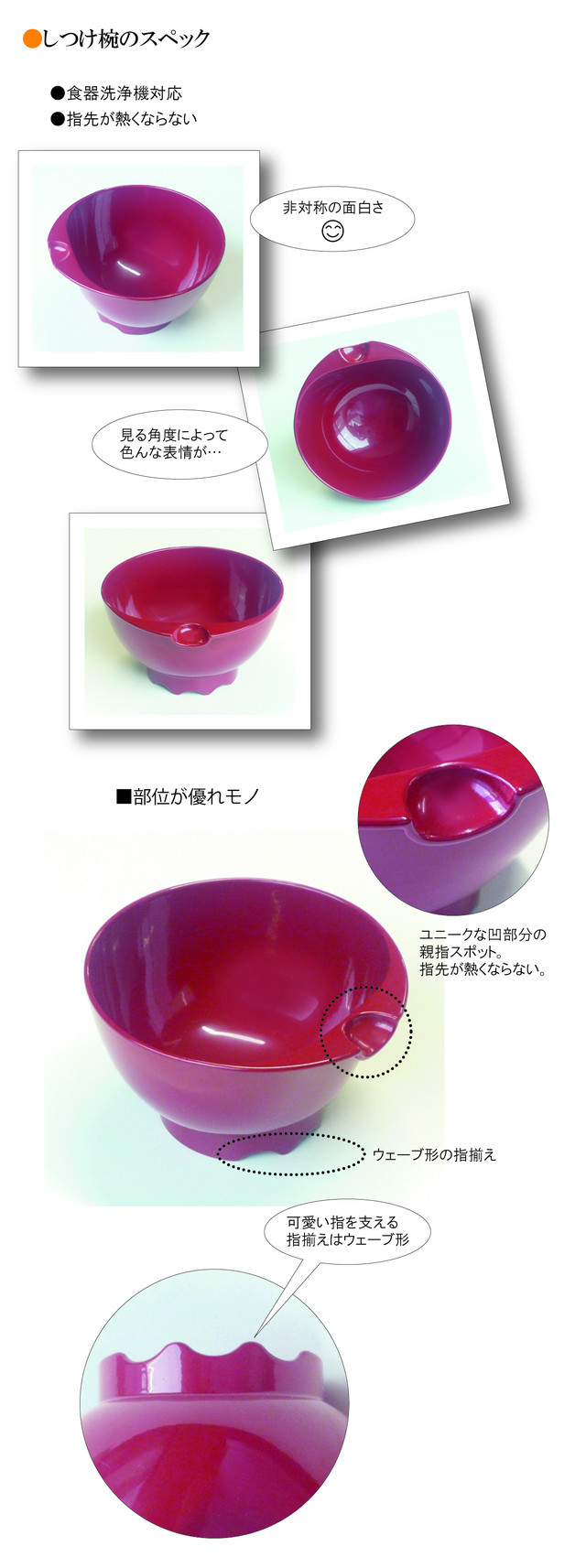 子供の頃から、正しい「お椀の持ち方」を躾けることができるお椀です。