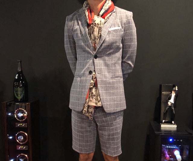 またフォーマル使用として、タキシードタイプのハーフパンツスーツの提案も合わせて行っていきます。蝶ネクタイでの合わせのために、オーダーのシャツも一緒に店舗で取り扱います。