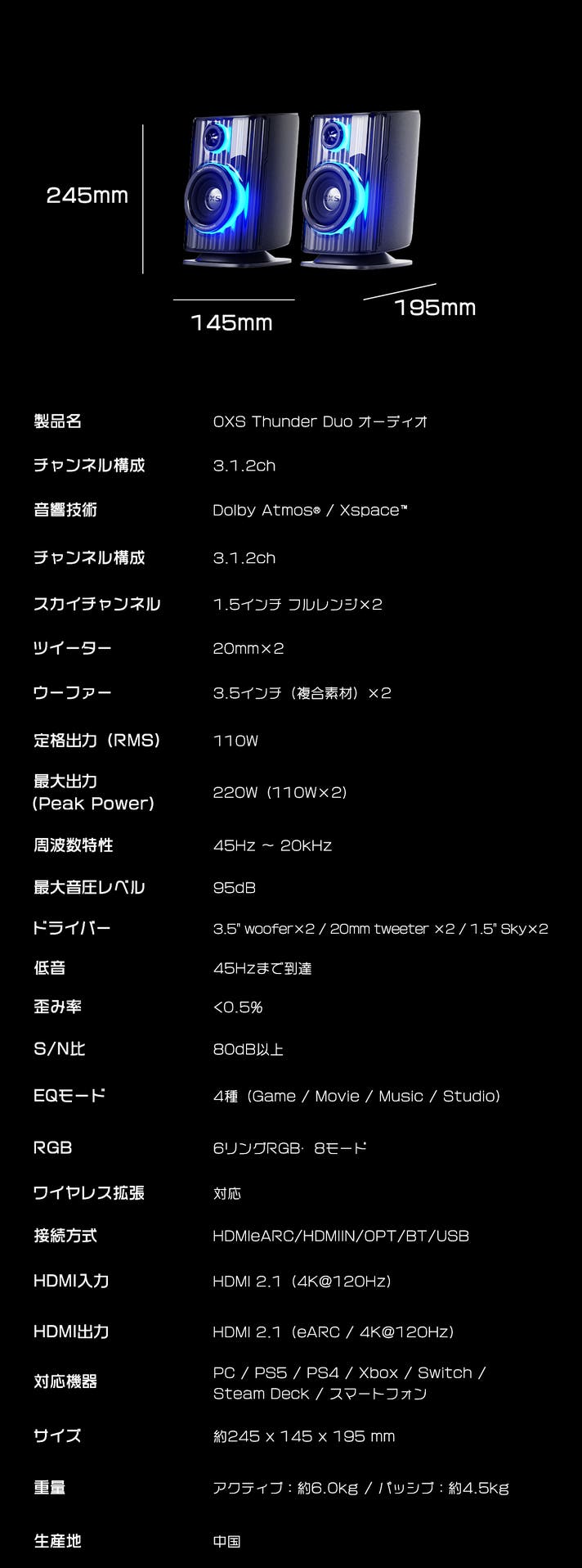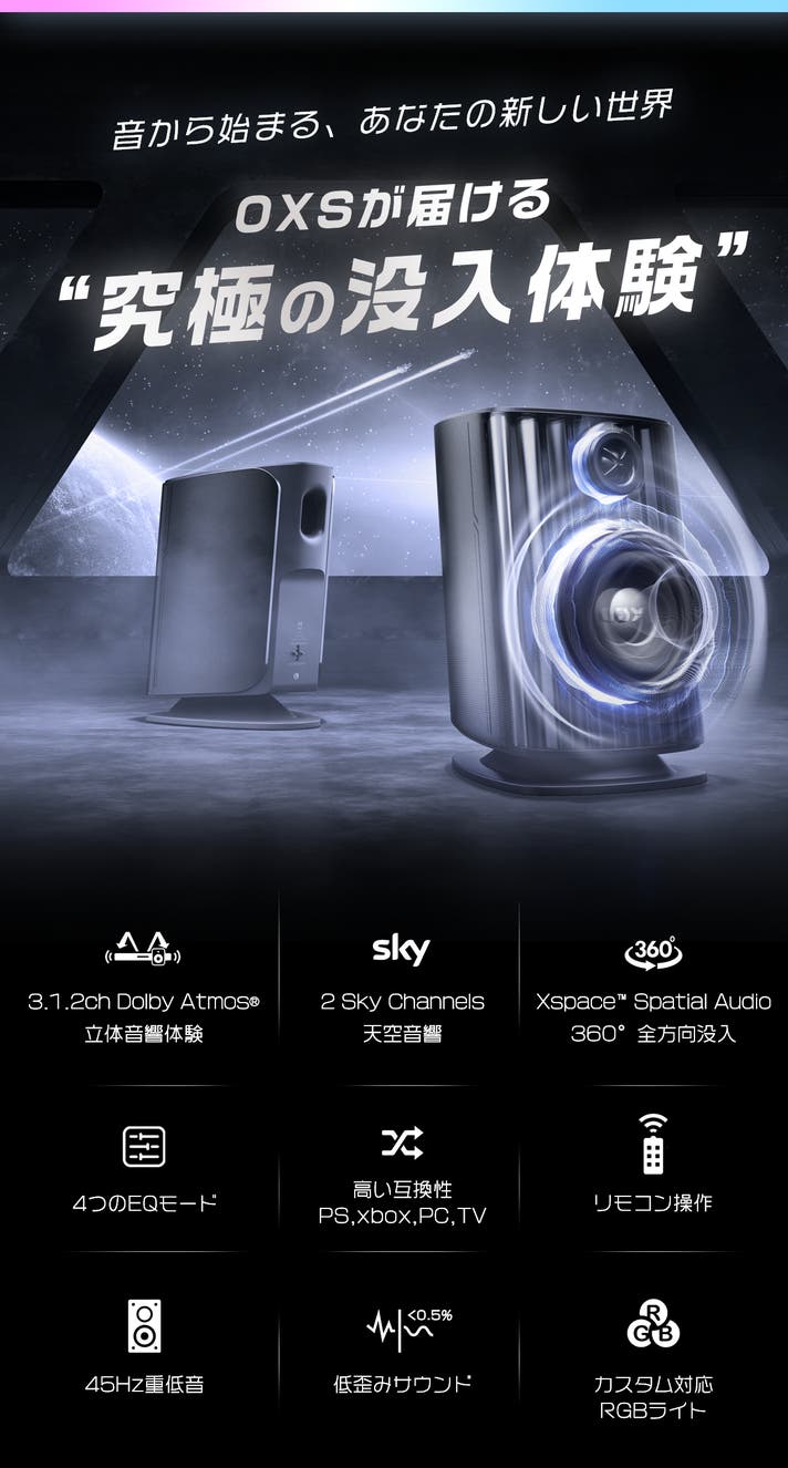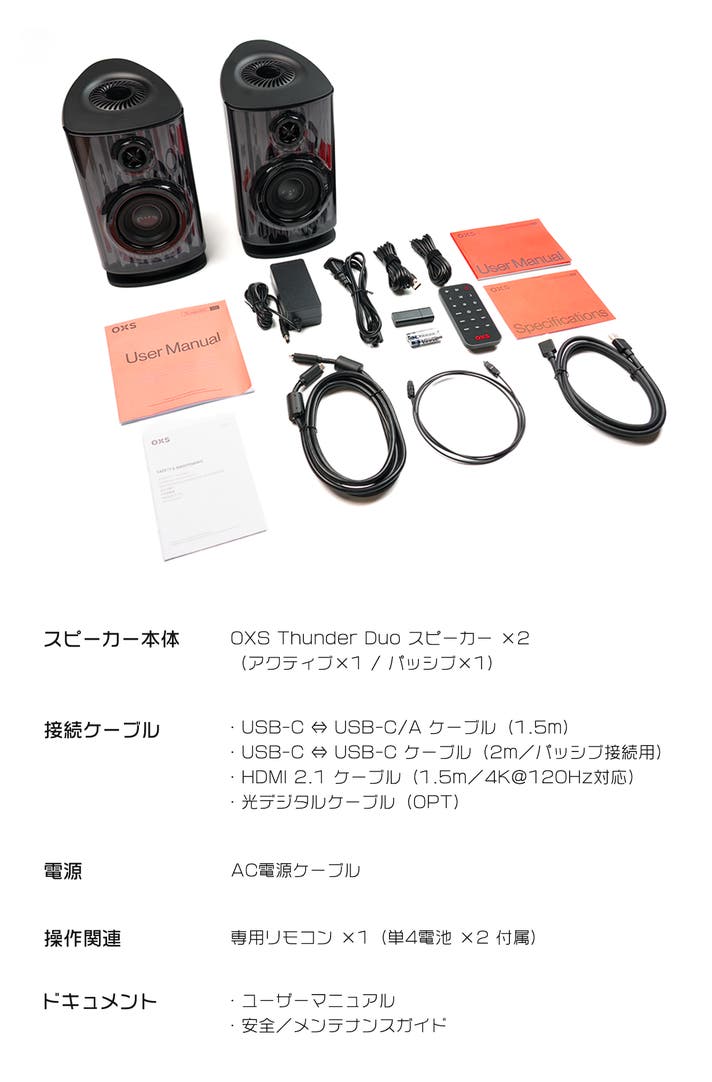 OXS Thunder Duoが目指したのは、単なる高音質スピーカーではありません。音が世界をつくり、世界が体験を変えていく。Thunder Duoは、あなたの部屋を、映画館やゲームの世界へと自然に変えてくれる存在です。あなたの映画・ゲーム・音楽体験を、次の次元へ導くために生まれました。
