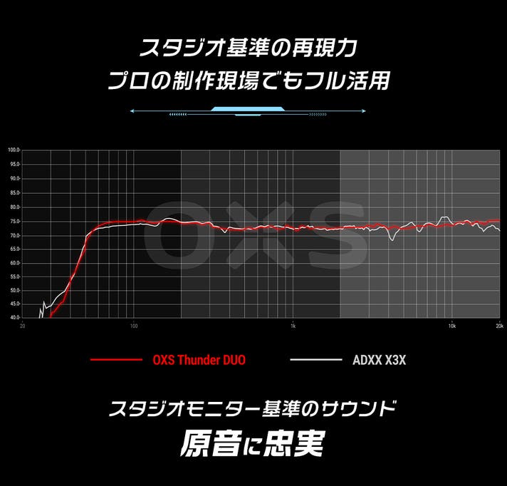 OXSのサウンドは、音響研究の最前線である世界的音作りを支えたてきた音響エンジニアによって設計しました。質感・解像度・バランスを徹底的に磨き上げ、スタジオ基準の正確さと再現性を徹底的に追求します。映像編集、音楽制作、配信、サウンドチェック——一切の妥協を許さない