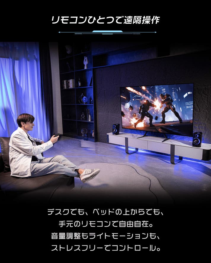 3.1.2ch構成とDolby Atmos®を採用。頭上から降り注ぐ音、背後を通り抜ける効果音まで、自然に再現します。映画では、雨音や息づかいまで伝わる臨場感。ゲームでは、敵の位置や動きを音で把握できる立体的な音場。音楽では、空気感まで感じられる奥行きのあるサウンド。「音を聞く」体験が、「空間を感じる」体験へと変わります。