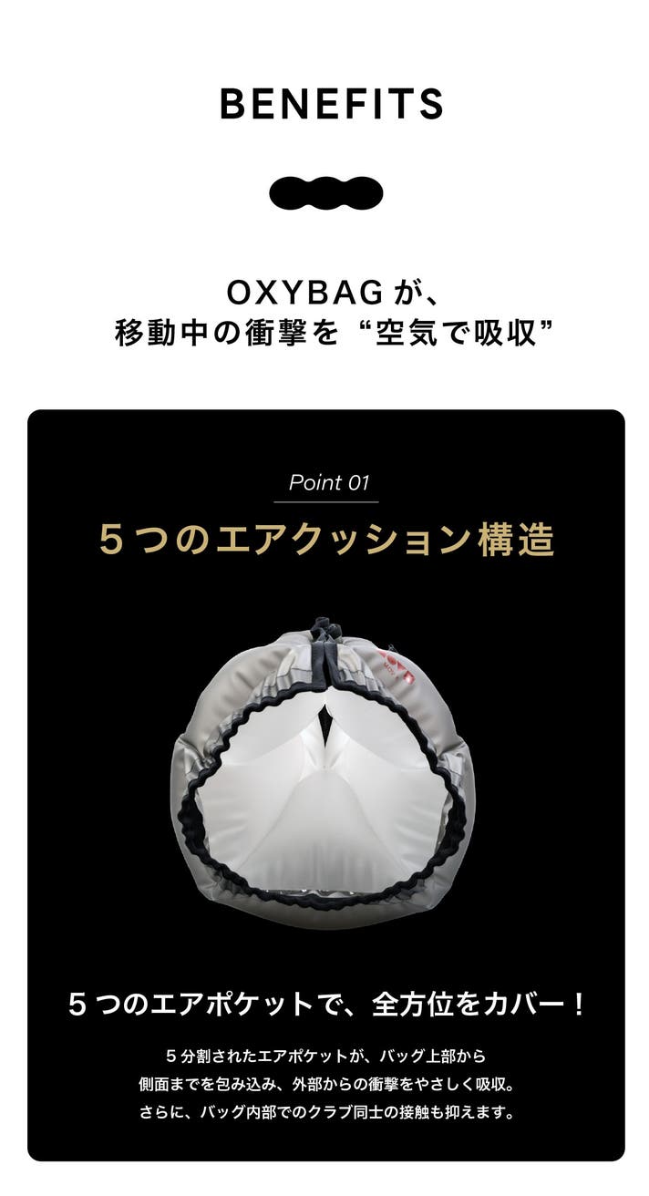 細部に至るまで設計されたOXYBAGは、ゴルファーが求めてきた納得できる使用感と保護性能を提供します。