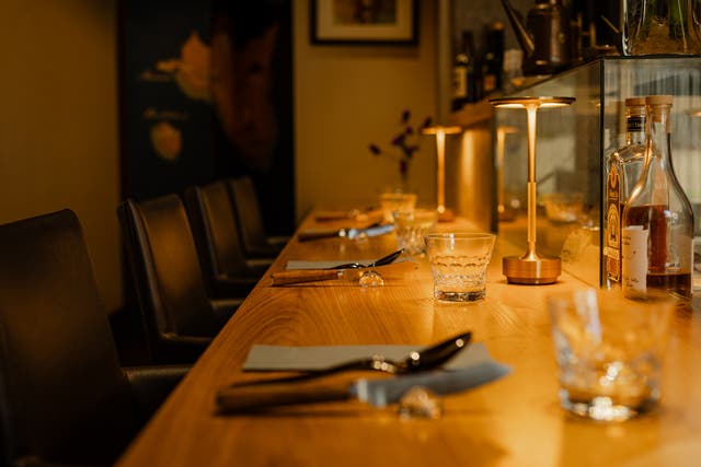 カウンター席に座り、目の前でできあがったばかりの料理をつまみながら、ワインを一杯。
