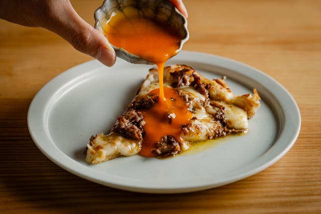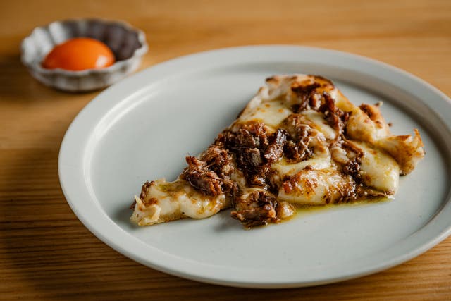 それから、前菜のあとにはキアニーナ牛のボロネーゼのピザも登場。