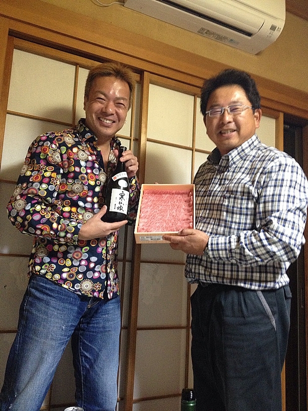 ■尾崎牛を育て上げた尾崎さん(右)と一緒に