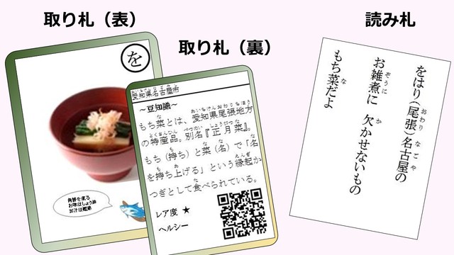 また、読み札はご当地ならではのお雑煮の特徴ができるだけ伝わるように考えましたので、遊びながらお雑煮の知識が頭に入っていくことでしょう。