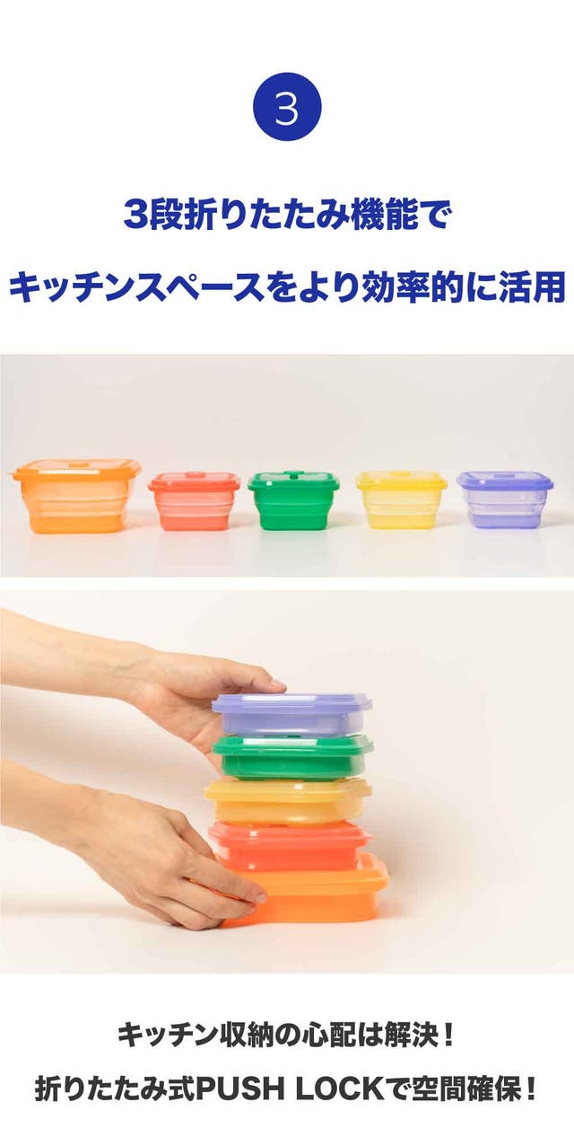 - 折りたたみ式で約半分の大きさに!食べた後はコンパクトに。生活に彩りを与える15色の豊富なカラー
