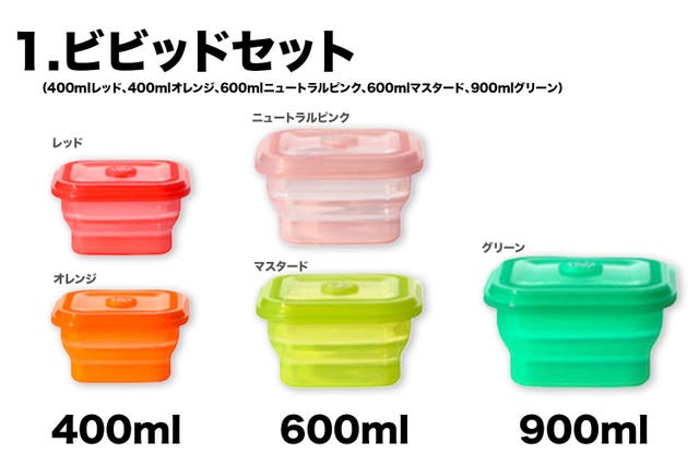 1.ビビッドセット(400mlレッド、400mlオレンジ、600mlニュートラルピンク、600mlマスタード、900mlグリーン)