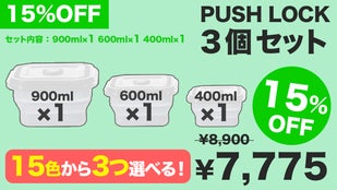 【PUSH LOCK】400ml×1、600ml×1、900ml×1の3個セットをお届けします。