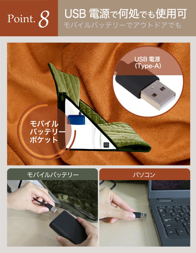 ■USB電源でどこでも使用!モバイルバッテリーポケット付き!