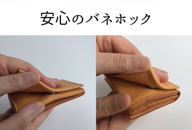 紙の名刺など柔らかい素材の物を入れると、バネホックの跡が残る場合があります。