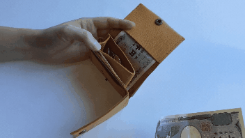 コインスペースを覆うように、ひらがなの「し」の字にお札を折って収納出来ます。