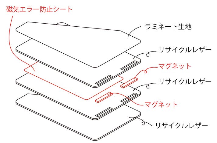 2. ケース中央には磁気エラー防止シートが埋め込まれていて、回り込む磁気を軽減。