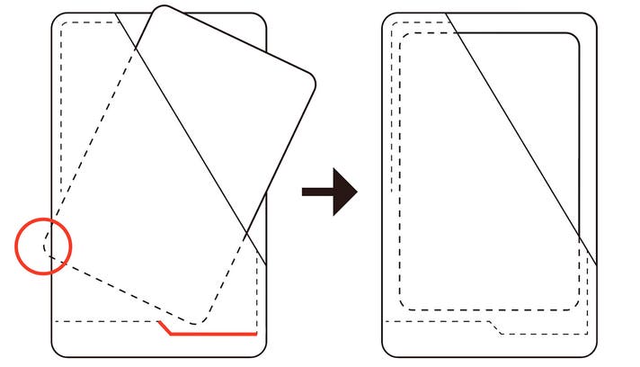 斜めスリット構造は裏表どちらの面も左右どちらからでも取り出し可能。