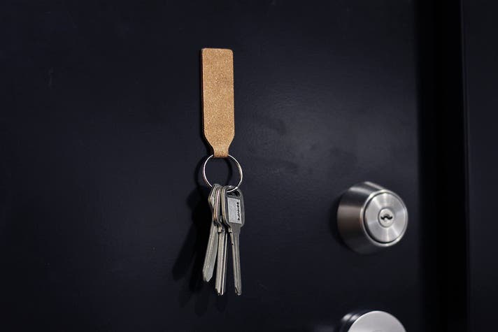 金属にくっ付く、マグネットが内蔵されたキーホルダー。