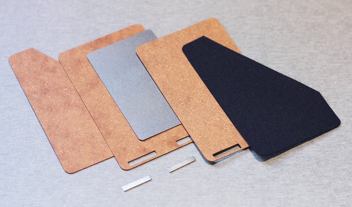 PACCIのベースは 0.6mm厚のリサイクルレザーを使用。ドイツ製のこのレザーは、皮革製品を製造する際に出る革の端材を繊維状に粉砕し、これをラテックス樹脂と混ぜ合わせて固めてシート状にしたもので、今まで捨てられてきた貴重な革素材をアップサイクルした環境対応素材です。40%ほど樹脂等が入っていますが、天然皮革ならではの自然の風合いを変わらず楽しむことができます。