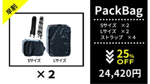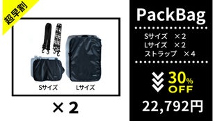 「PackBag」は【Lサイズ】【Sサイズ】【ショルダーストラップ2本】のセットとなっています。