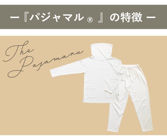 『パジャマル®』は、鼻まである大きなタートルネックが特徴で、「マスク」「マフラー」「パジャマ」の3つの機能を持つパジャマ。