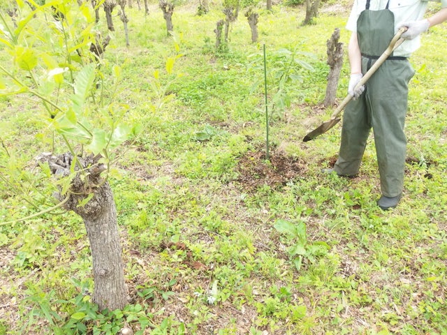 この飼育地の管理もSDGsの観点から、進化を続けています。例えば圃場への植林による里山林の再生、飼料樹であるクヌギの枝を剪定する際に出る大量の木材チップをまいて雑草を抑制し、同時に管理機材に使う化石燃料の削減、さらにはチップの有機肥料化の検証など。1000年先を見据えた地域循環型のサスティナブルな管理を目指して、日々奮闘しています。
