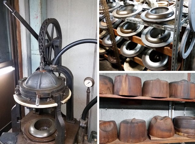 当社は「帽体」を「金型」でプレスする「型入れ帽子」を専門とし、現在では日本で数少ない製造方法で、