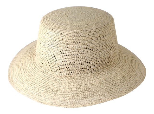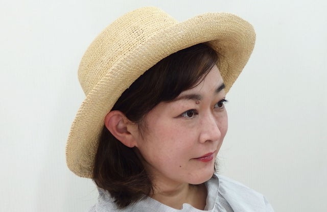 型入れ前の帽体のままでかぶりたいというお客様の声を商品化しました。ツバ巾が広いので紫外線対策に適しています。リゾート地でかぶるのも良し。ワンピースにも似合います。