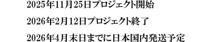 このプロジェクトはAll in型です。目標金額の達成に関わらず、プロジェクト終了日の2026年02月12日までに支払いを完了した時点で購入が成立します。