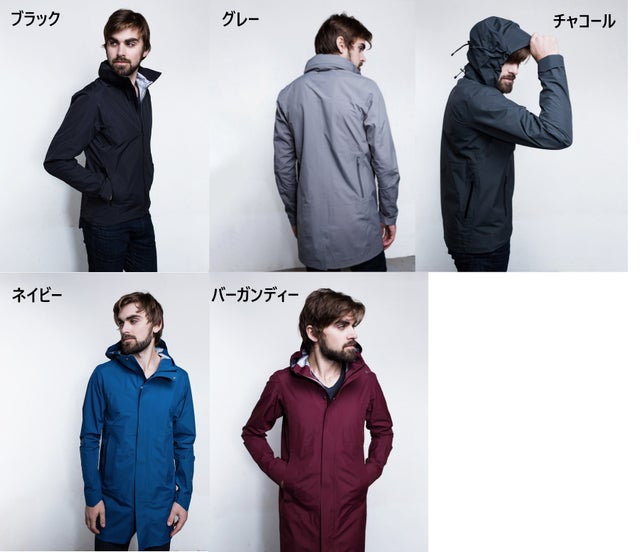 3タイプのジャケットのメンズ、レディースともそれぞれ、カラーはブラック、グレー、チャコール、ネイビー、バーガンディーの5色をご用意しました。