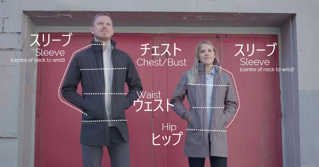 3タイプのジャケットのメンズ、レディースともそれぞれ、サイズはXS, S, M, L, XLの5サイズをご用意しました。中にミドルウェアとしてフリースやセーター等を着る場合は、ワンサイズ大きめをお勧めします。